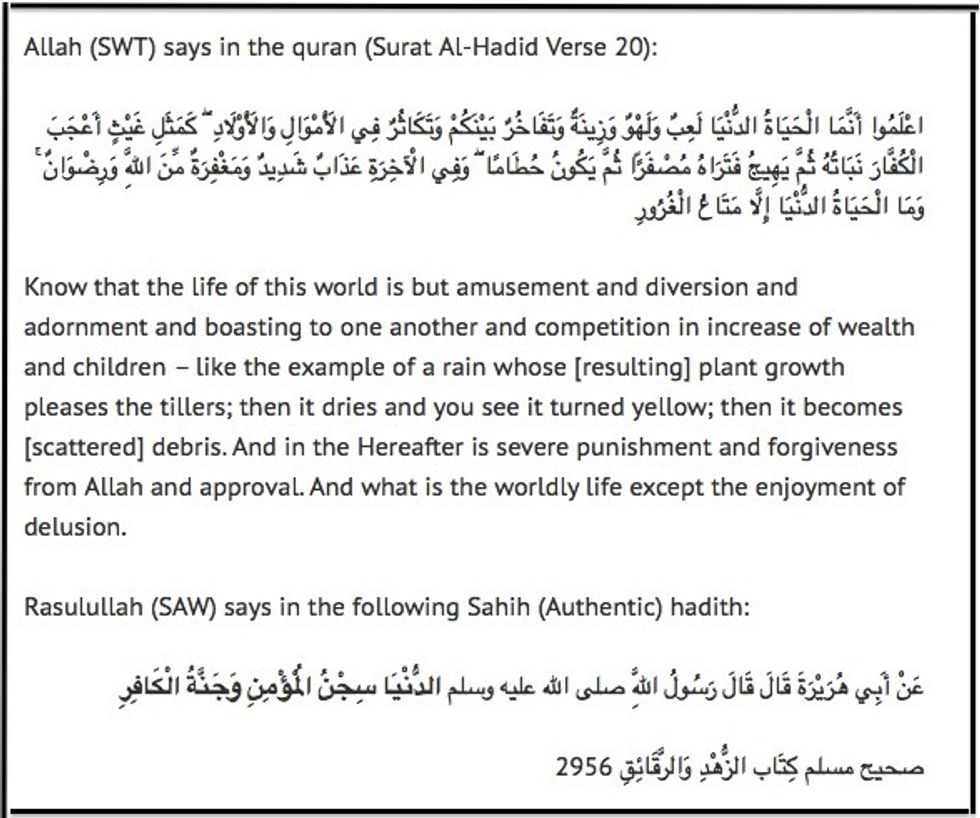 The first post titled, "A Prison Called Dunya," cites Abu Huraira, a companion of the Prophet Muhammad, who said, "The world is a prison for the believer and a paradise for the unbeliever."