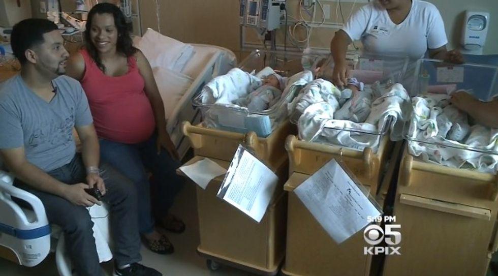 "First they told us they were twins. Then the doctor had to call somebody else — another doctor — to say, 'Do you see what I’m seeing?'" Miguel Cendejas, the new father, told KPIX-TV. "And they were triplets."