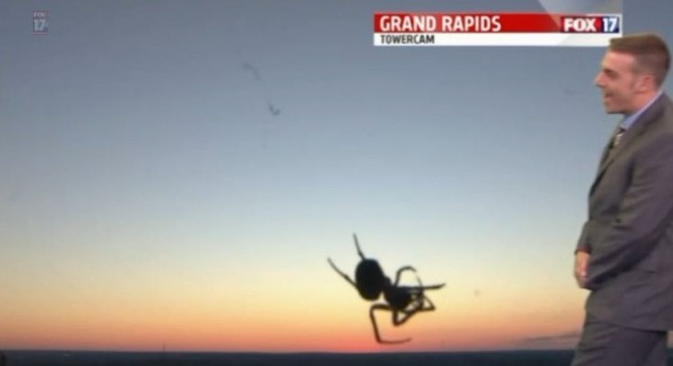 Meteorologist Garry Frank with WXMI-TV out of Grand Rapids, Michigan, was commenting about the smudges on a live weather camera Tuesday morning when something far more interesting crossed the lens.