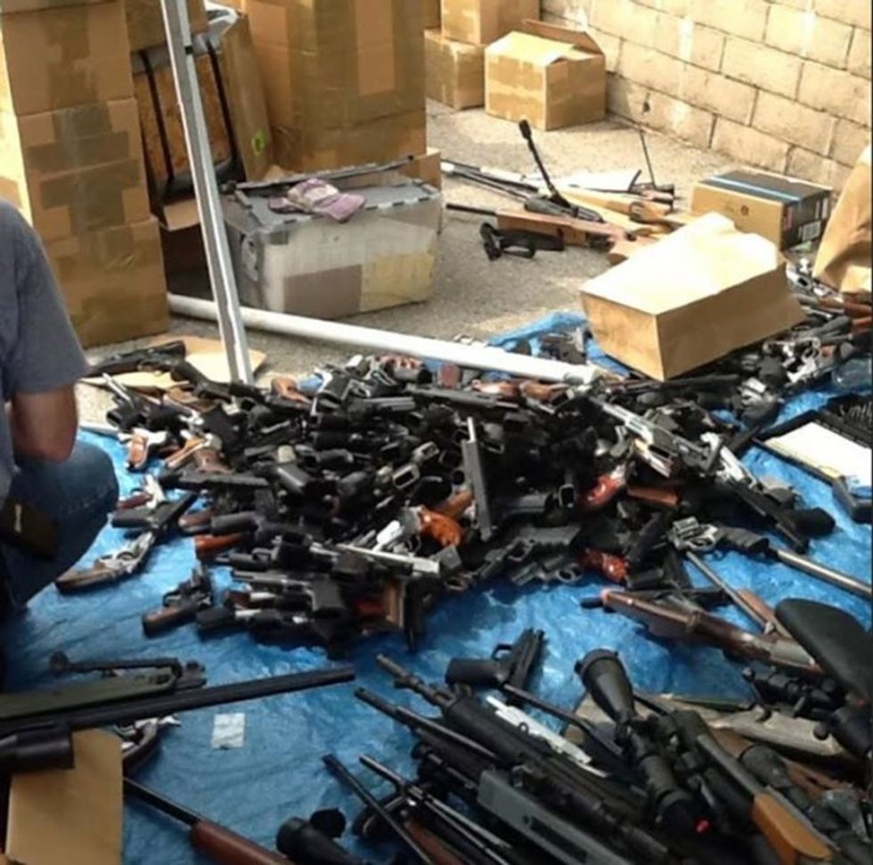 Strung out across the property were about 1,200 guns – some of them pistols, others shotguns and some rifles. Many of them had never even been fired and, in fact, some were wrapped in packaging with the price tags still on them.