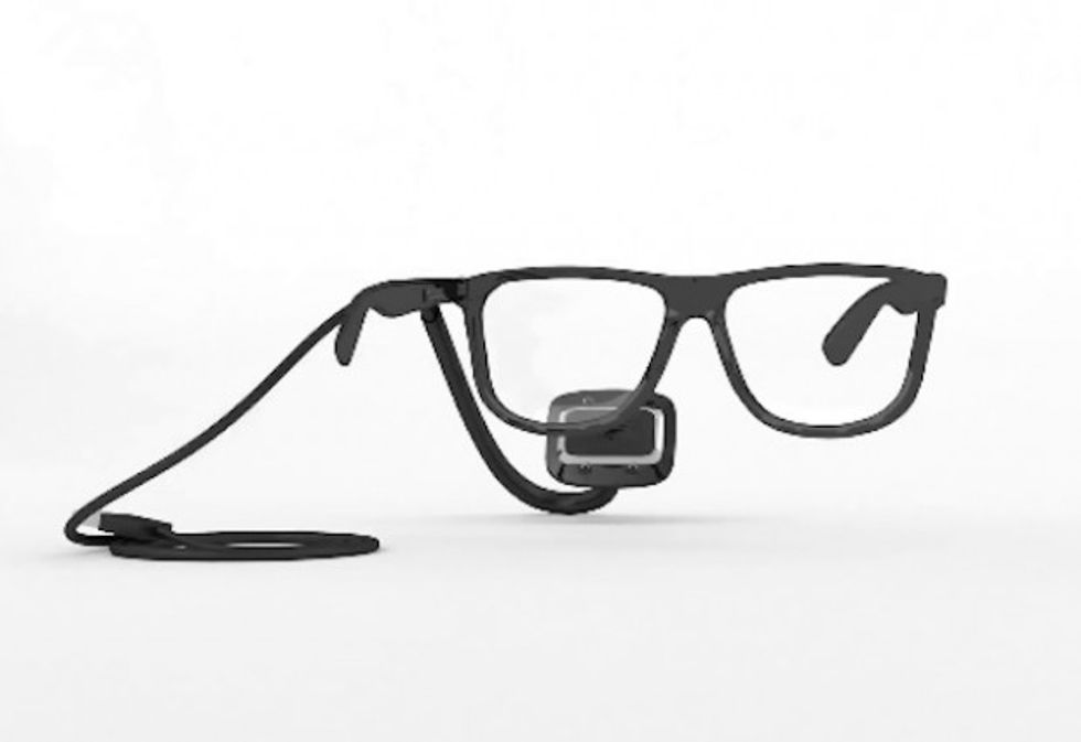 An infrared camera connected to the plastic eyeglasses frame identifies eye movements and tells the computer or mobile device the message. That computer then translates the blinks and eye movements and emits the sentence to a speaker. The device uses the same swipe technology found on smartphones.