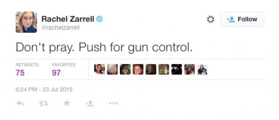 "Don't pray. Push for gun control," news editor Rachel Zarrell tweeted.