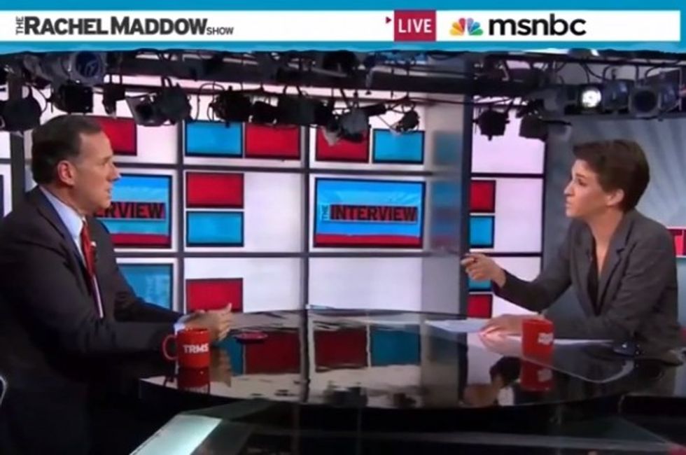 GOP presidential candidate Rick Santorum faces off against Rachel Maddow (MSNBC)