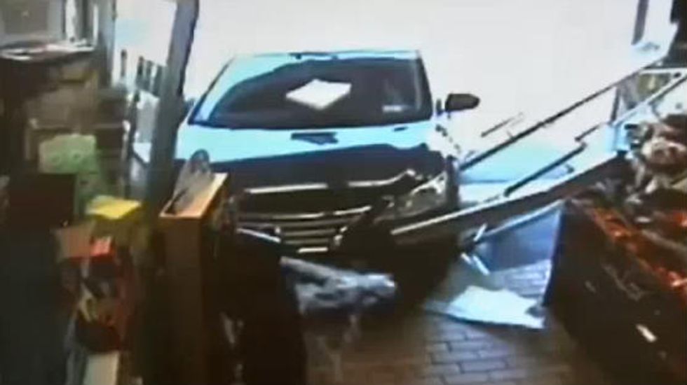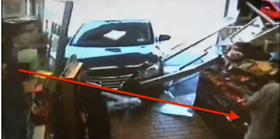 It happened Thursday in Freeport, New York, as the driver claims she meant to hit the brakes but accidentally put pressure on the gas pedal, sending her crashing through the windows and taking out about two aisles of the small convenience store, WNBC-TV reported.