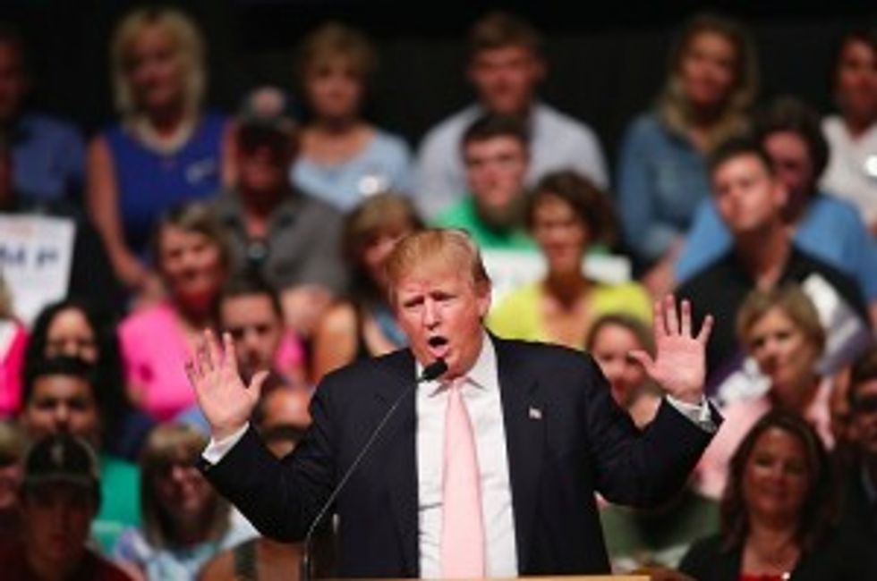 Republican presidential hopeful businessman Donald Trump speaks to guests gathered for a rally on July 25, 2015 in Oskaloosa, Iowa. (Image source: Scott Olson/Getty Images)