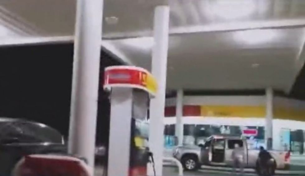 The robbers managed to get away in a stolen car with more than $1,000 cash from the gas station and the wallets from two customers inside the store, KHOU reported. KPRC-TV elaborated that the suspects drove to a nearby apartment complex and took off on foot. No one was injured in the incident.