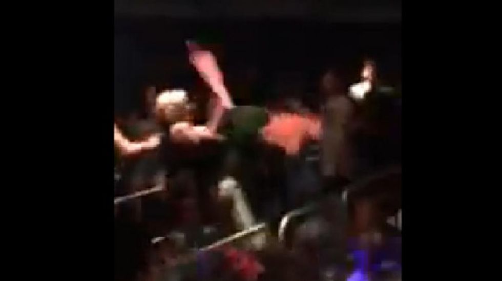 With all gloves now off, the guests begin throwing punches, forcing others in line to back up just to stay out of their way. A Disney employee then attempts to break up the fight but just gets pushed away as the brawling park-goers continue to go at each other.