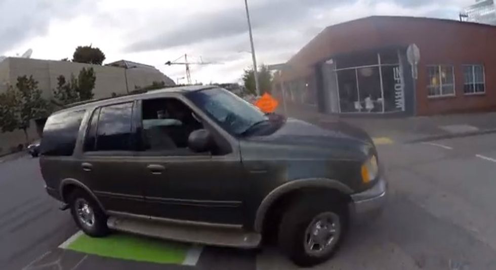 Volpe was riding in a bike lane in Seattle Friday when a SUV turning left in front of him cut him off, knocking him to the ground. The driver of the SUV sped away. Volpe got up and tried to run after the vehicle, the clips on his cyclist shoes clacking on the pavement, but stopped when it was clear he wasn't going to catch him.