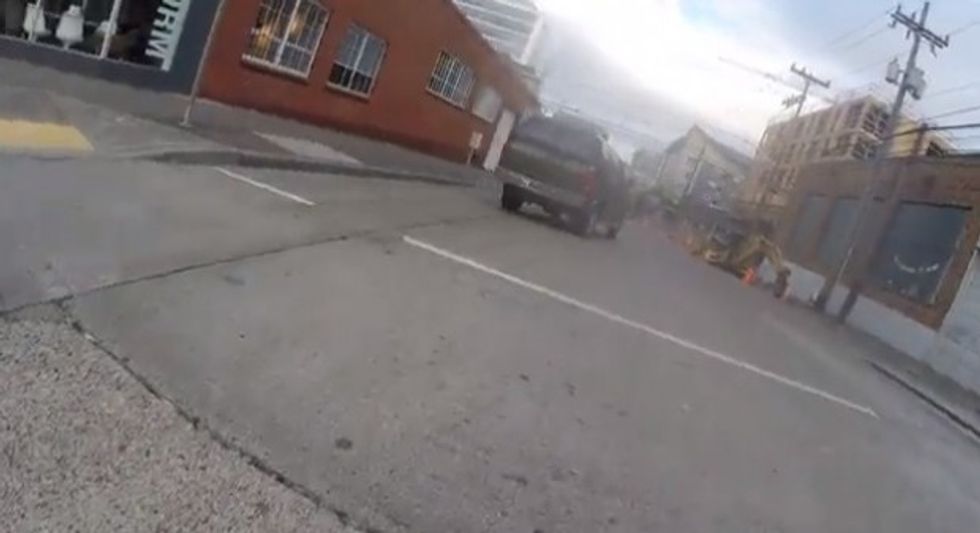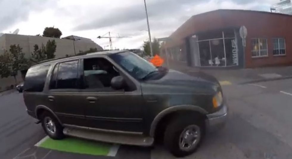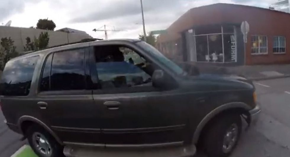 Watch the 28-second clip that Volpe dubbed "Hit & run SUV moron" (Content warning: strong language):