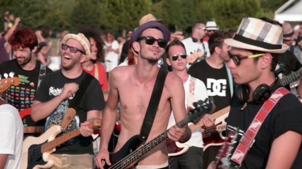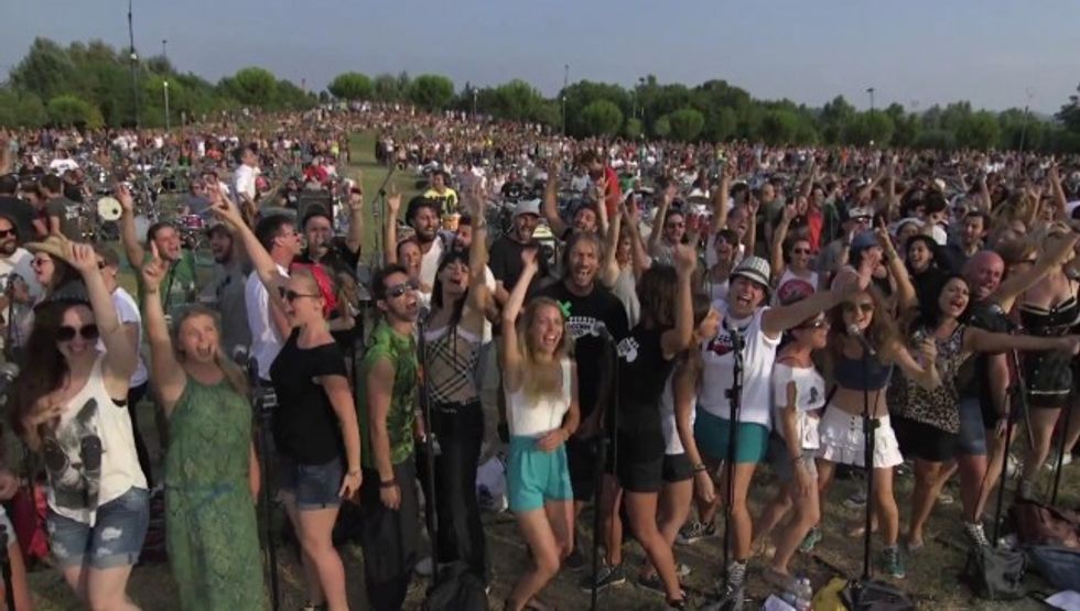 So, how about gathering 1,000 singers, guitarists, bass players and drummers in a field to play the Foo Fighters' "Learn to Fly"?