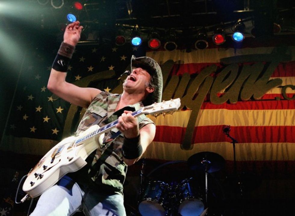 Rock artist Ted Nugent performs at the House of Blues inside the Mandalay Bay Resort & Casino during his Uncle Ted Remember the Alamo tour, July 30, 2005 in Las Vegas, Nevada. (Photo by Ethan Miller/Getty Images)