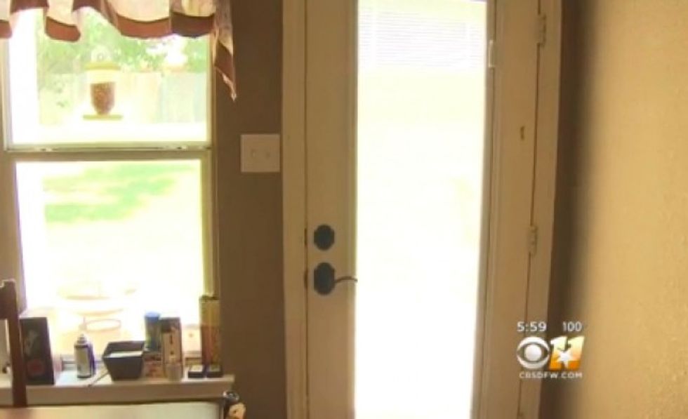 "From the edge of the kitchen I could see the back door was wide open," she told KXAS-TV. "I thought maybe I had left it open or hadn't shut it very well or the wind had blown it open."