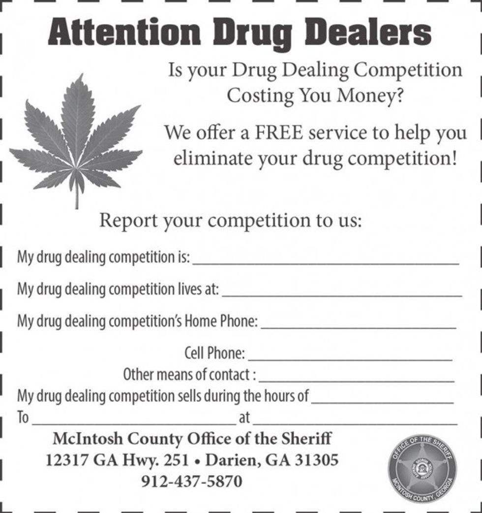 "Attention Drug Dealers," the ad said at the top. "Is your Drug Dealing Competition Costing You Money?"