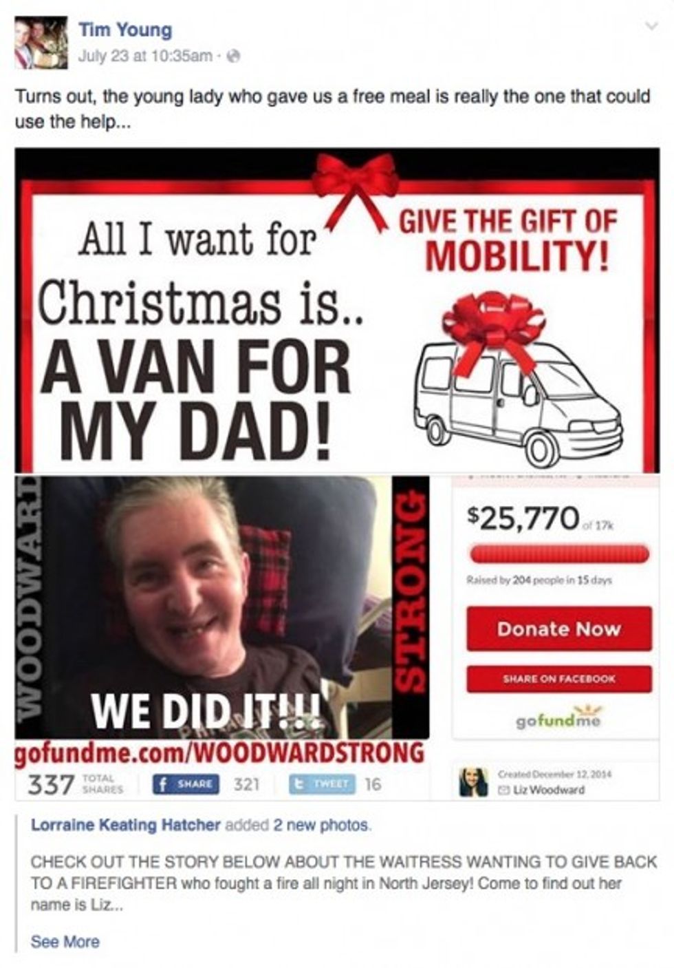Young soon learned that Woodward's father was quadriplegic and that she was trying to raise money to purchase him a wheelchair-accessible van. The firefighter knew he had to help.