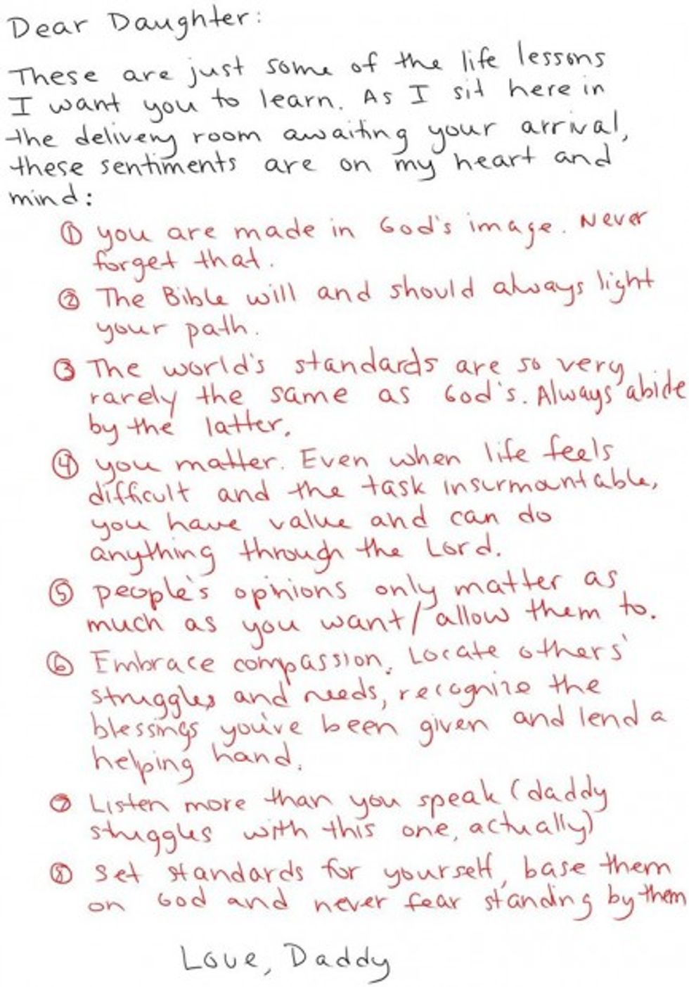 "As I sit in delivery room awaiting arrival of my daughter, I'm jotting down life lessons I want her to cherish," Hallowell posted on Facebook.