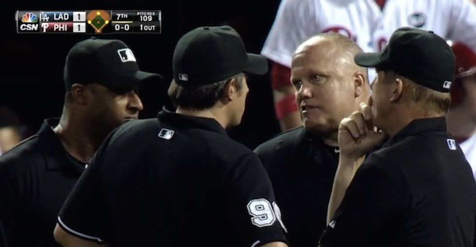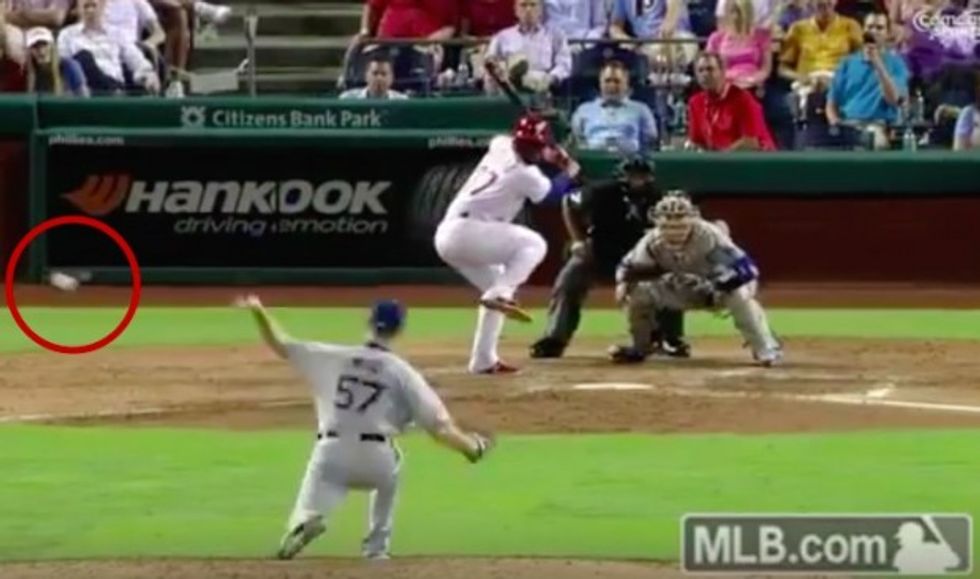 Something rather strange happened during Tuesday night's Dodgers-Phillies game — such a bizarre occurrence that the announcers said they'd never witnessed it before.