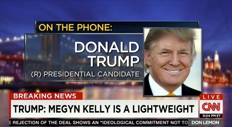 Real estate tycoon Donald Trump escalated his war with Fox News during a Friday evening appearance on CNN, hurling a shock insult at Megyn Kelly.