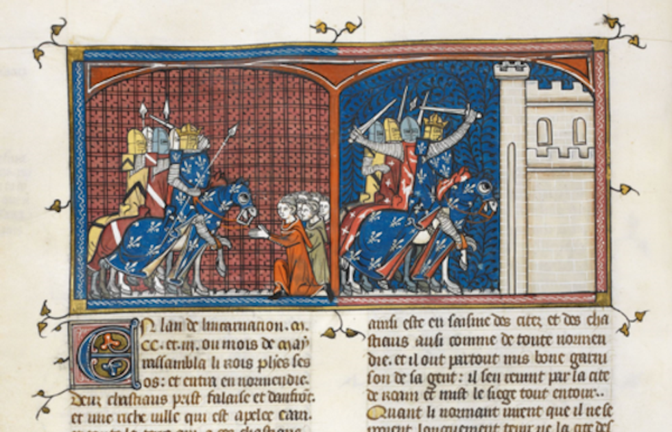 Harrison also pointed out that knights appeared to carry similar swords in an illustration (below) depicting the French invasion of Normandy in 1203.