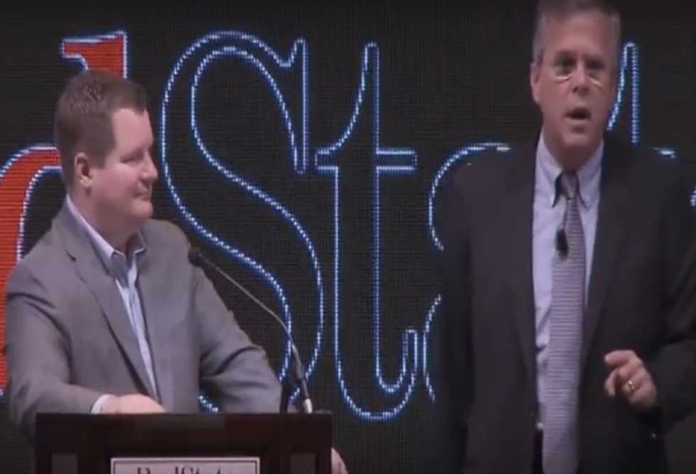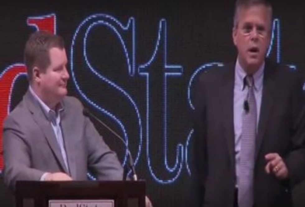 Jeb Bush, right, speaks about Donald Trump's statements Saturday at the RedState gathering. (Image source: YouTube)