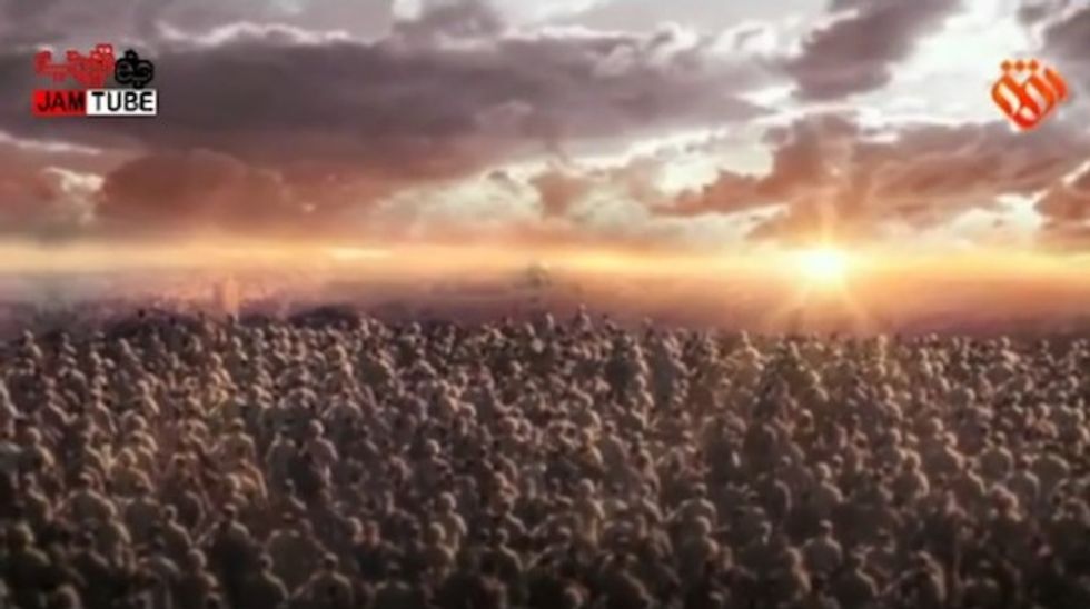 The pan Islamic military alliance in the Iranian video sets its sight on Jerusalem's Temple Mount. (Image source: YouTube)