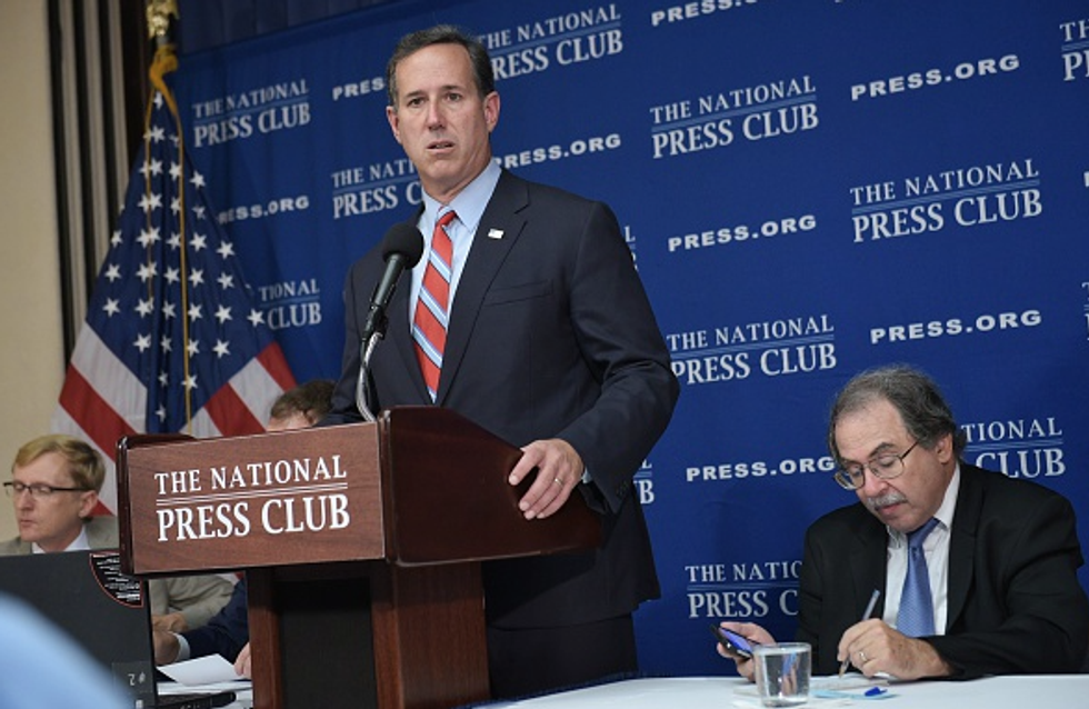 Republican presidential hopeful Rick Santorum speaks during a press conference at the National Press Club on August 20, 2015 in Washington, DC. AFP PHOTO/MANDEL NGAN (Photo credit should read MANDEL NGAN/AFP/Getty Images)