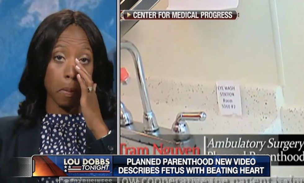Rep. Mia Love's (R-Utah) eyes welled up with tears while speaking with Fox Business Channel's Lou Dobbs about the latest Planned Parenthood video.