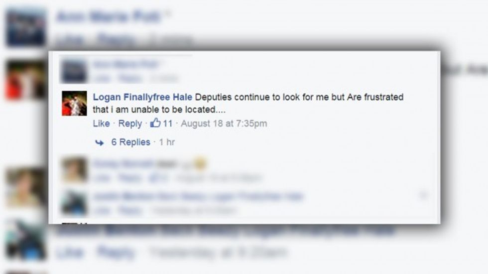 After the Polk County Sheriff's Office posted a mugshot of Hale and another suspect as part of their #FridayFelons campaign on Facebook, Hale supposedly commented on the photo, teasing the officers who hadn't located him. On Facebook, his name was "Logan Finallyfree Hale."