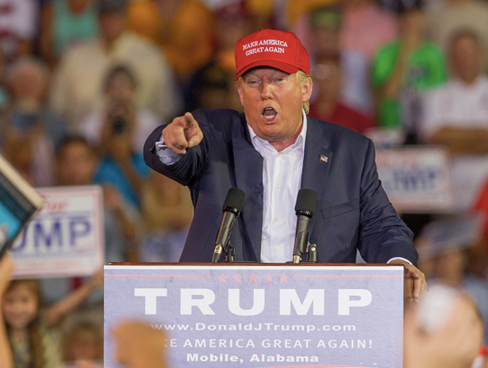 MOBILE, AL- AUGUST 21: Republican presidential candidate Donald Trump speaks during a rally at Ladd-Peebles Stadium on August 21, 2015 in Mobile, Alabama. The Trump campaign moved tonight's rally to a larger stadium to accommodate demand. (Photo by Mark Wallheiser/Getty Images)