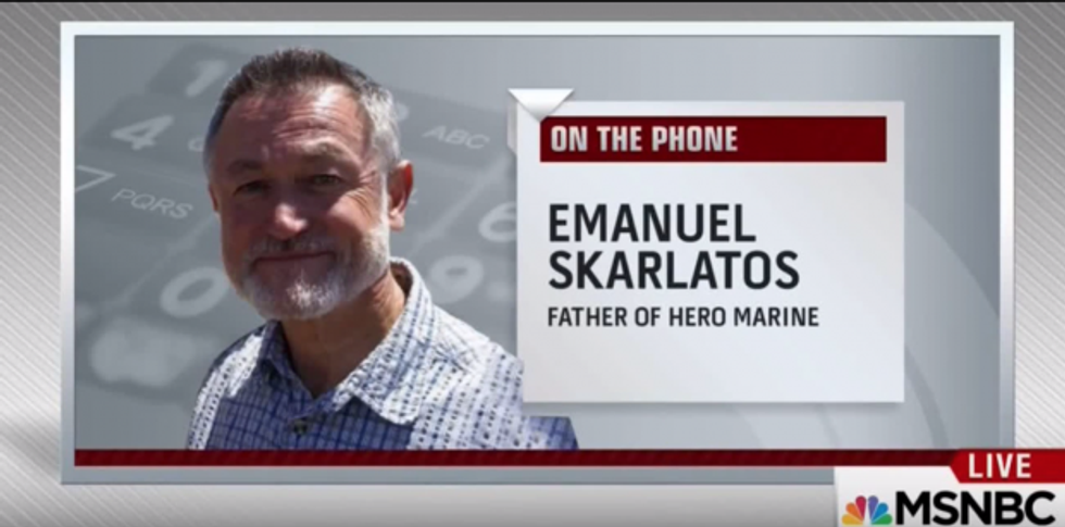 After discussing the heroic actions of his son and three other men in taking down the gunman, the father, Emanuel Skarlatos, asked host Tamron Hall, “Can I just say one quick thing?”