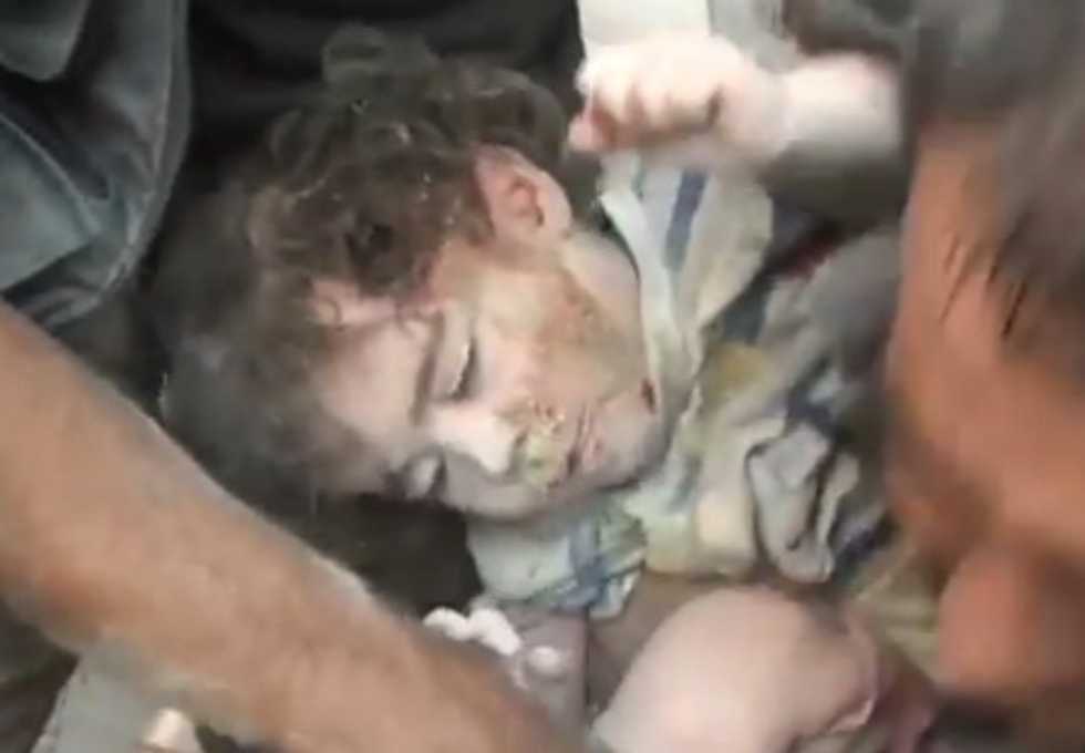 Video has emerged on social media showing the dramatic rescue of a little Syrian girl who was trapped under a building that was bombed over the weekend.