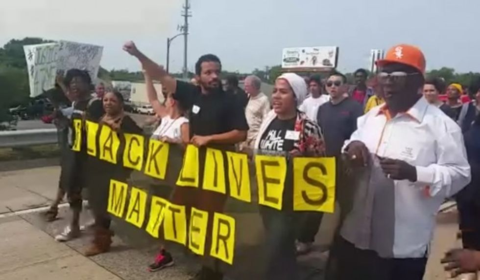 Black Lives Matter protesters marched and chanted "pigs in a blanket, fry 'em like bacon" —