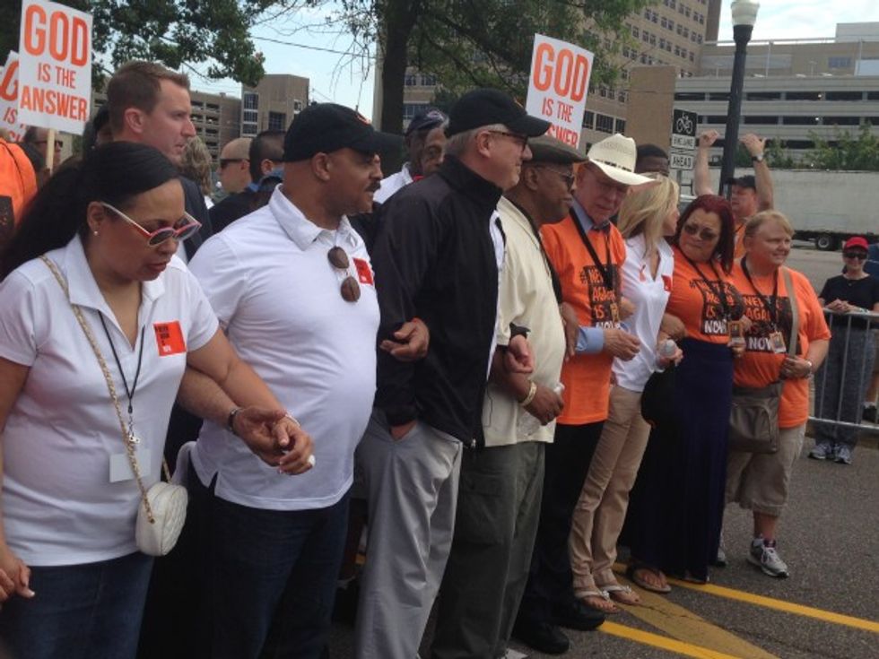 Glenn Beck was joined by Martin Luther King Jr.'s niece Alveda King, actor Chuck Norris, historian David Barton, Bishop Jim Lowe, Ted Cruz's father, Rafael Cruz, and crowds of supporters for the Unity March throughout the streets of Birmingham, Alabama, on Saturday morning.