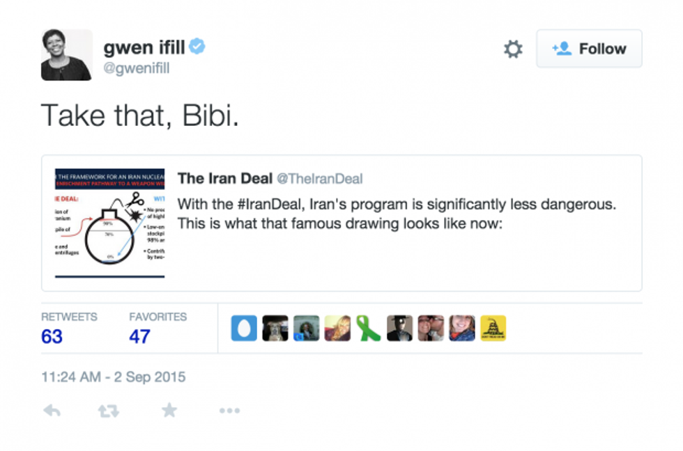 RT @gwenifill: Take that, Bibi... pic.twitter.com/YLX4JVy2pM