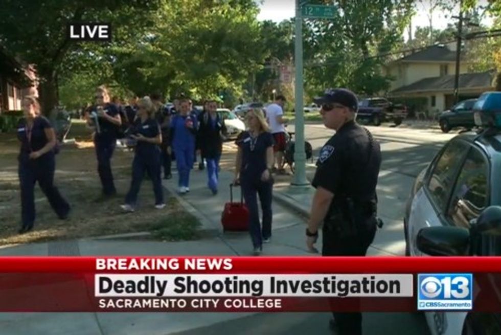 SACRAMENTO, Calif. (TheBlaze/AP) — Police hunted for a gunman Thursday night who opened fire at a Sacramento college parking lot, killing one person and wounding two others, authorities said.