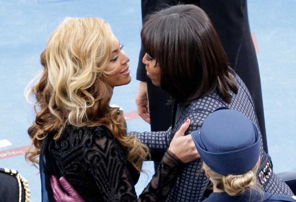 First lady Michelle Obama greets singer Beyonce after she performs the National Anthem during the public ceremonial inauguration on the West Front of the U.S. Capitol January 21, 2013, in Washington, D.C. Barack Obama was re-elected for a second term as President of the United States. (Rob Carr/Getty Images)