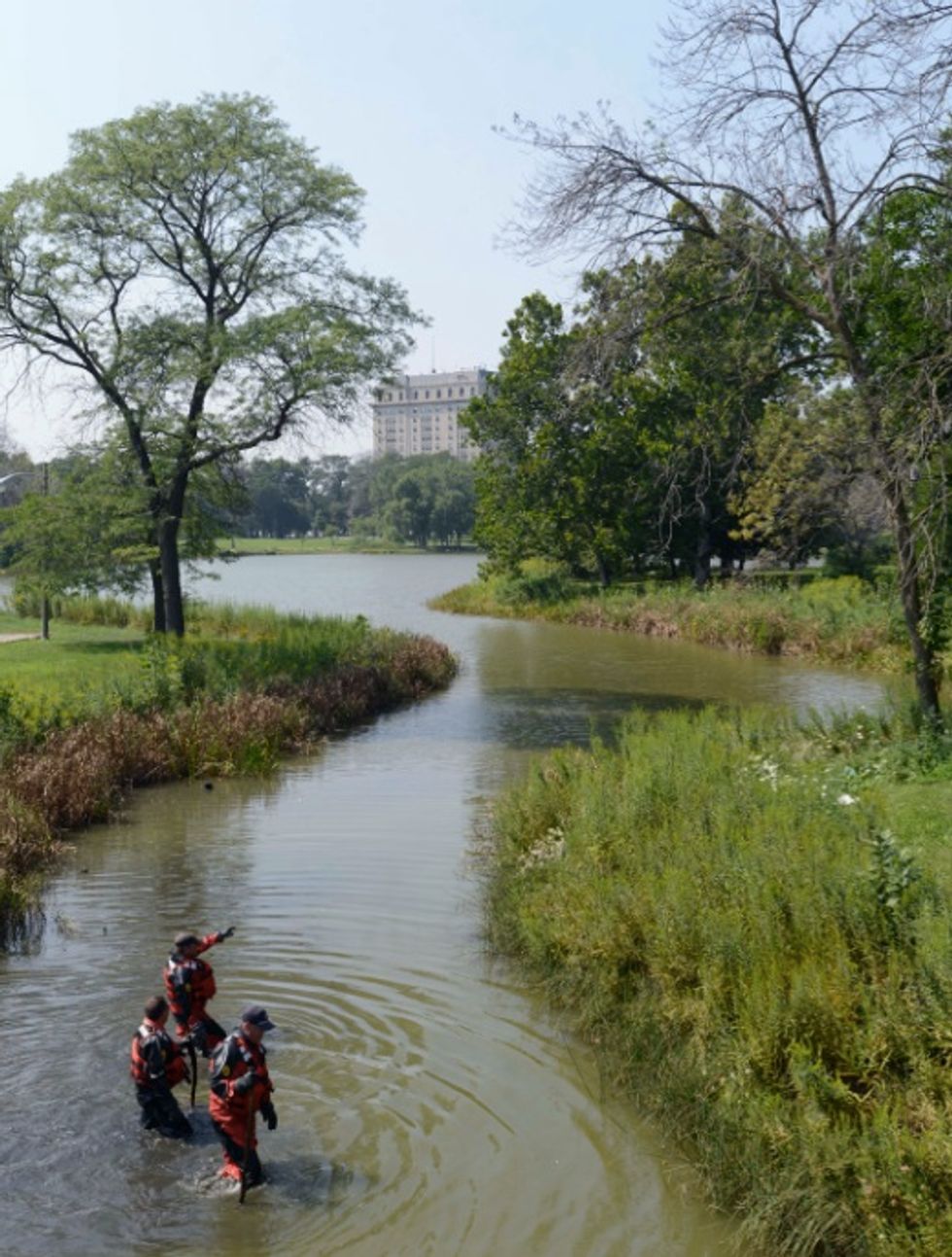 CHICAGO (TheBlaze/AP) — After a toddler's dismembered feet and hand were discovered in a lagoon at a Chicago urban park, detectives waded through cattail reeds and waist-high water Sunday, hoping to find more clues about the young victim's identity.