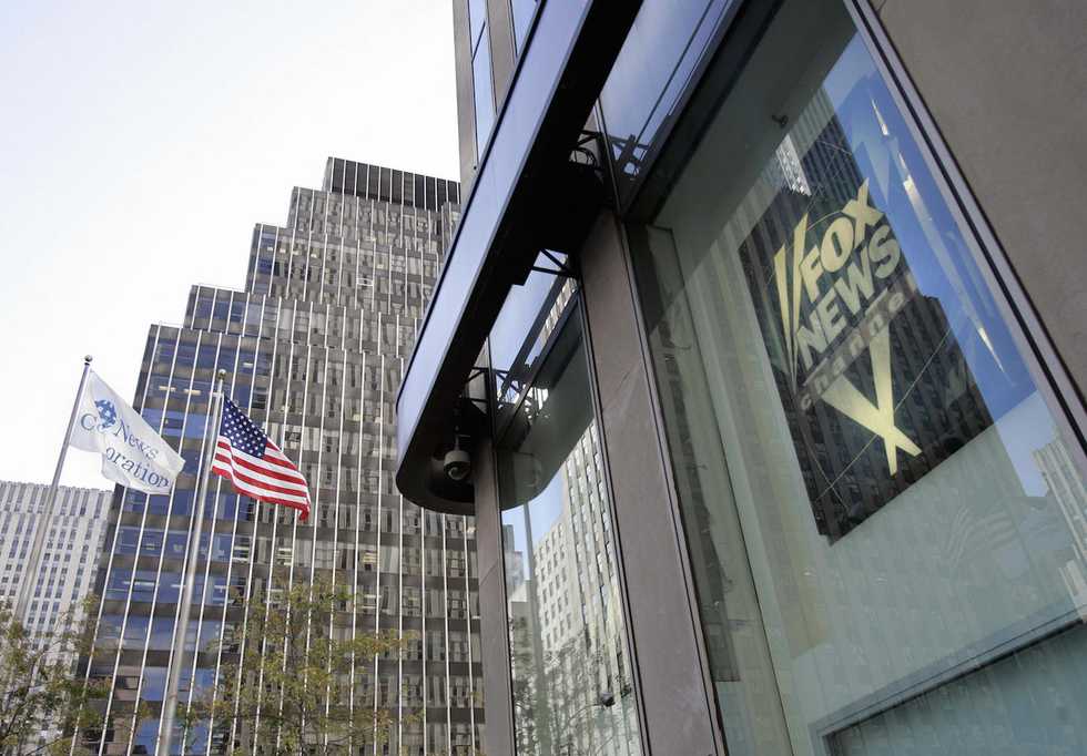 An electronic news ticker above a sign at the Fox News Channel television studios in the parent News Corporation building, 05 October 2006, in New York. (STAN HONDA/AFP/Getty Images)
