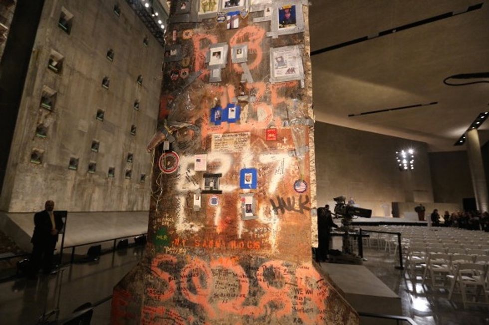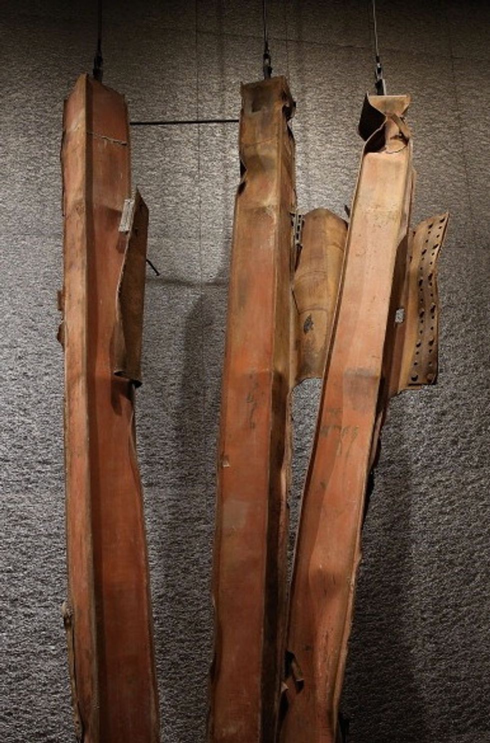 A salvaged section of steel facade from the North Tower from Ground Zero on display in the the National September 11 Memorial Museum. (Spencer Platt/Getty Images)