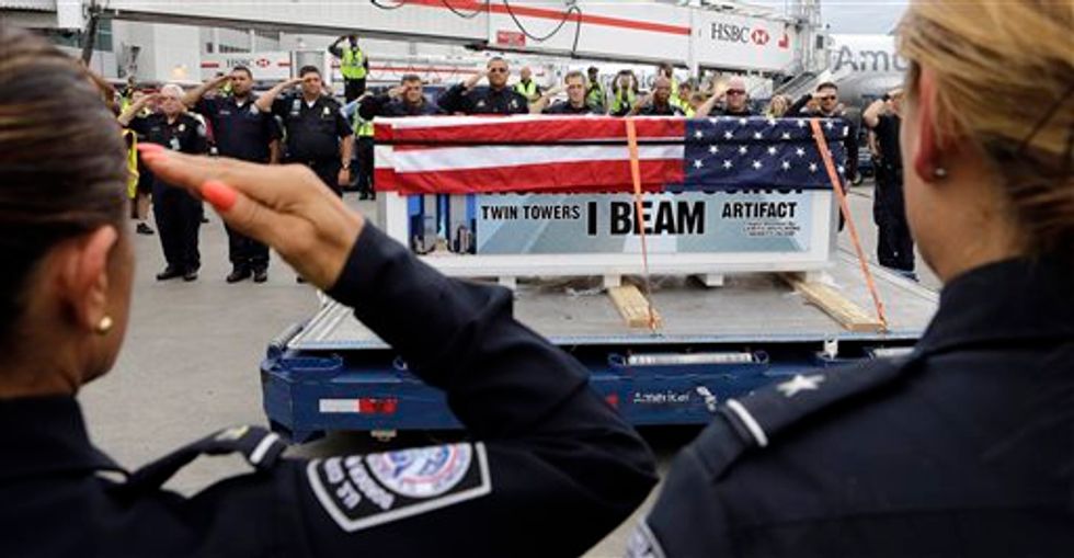 In an airplane hangar at New York's Kennedy Airport, fewer than 30 pieces of steel remain from the debris recovered after terrorists flew hijacked planes into the World Trade Center's twin towers on Sept. 11, 2001. Even 14 years after the attacks, applications are still pending for the pieces of metal - mostly for memorials and museum exhibits - and some pieces found a new home as recently as last week in New Hampshire, Massachusetts and Florida.