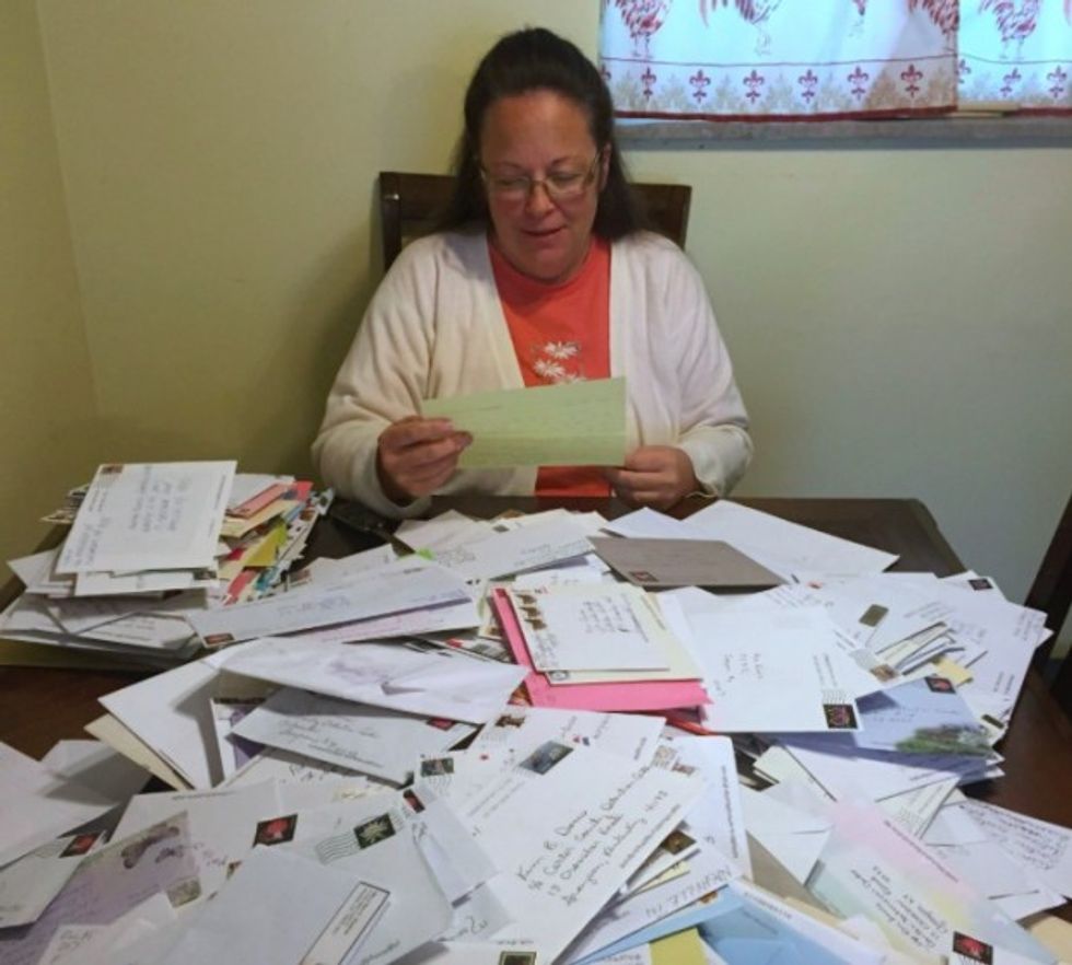 Kim Davis sits at home with the "piles" of letters she received from supporters (Liberty Counsel)
