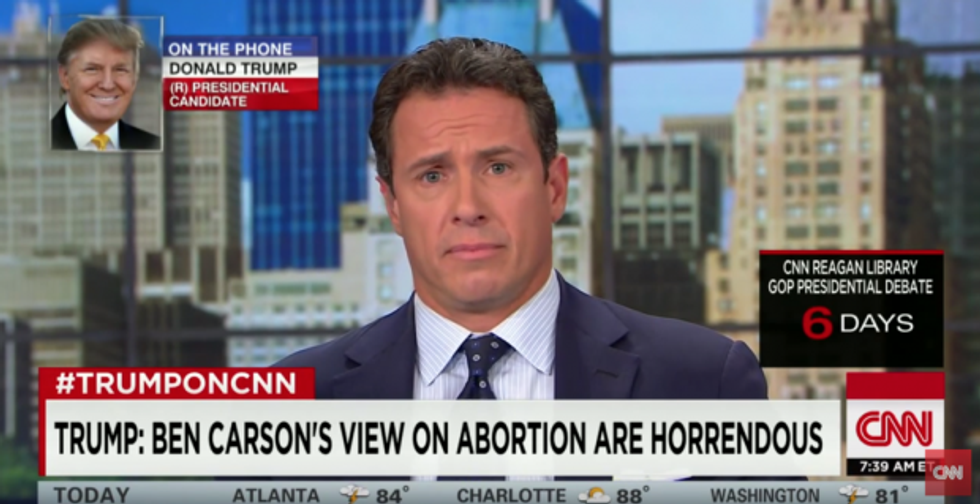Republican presidential candidate Donald Trump unloaded on his GOP rival Ben Carson on Thursday – but it was one specific criticism that brought a stunned look over CNN anchor Chris Cuomo's face.