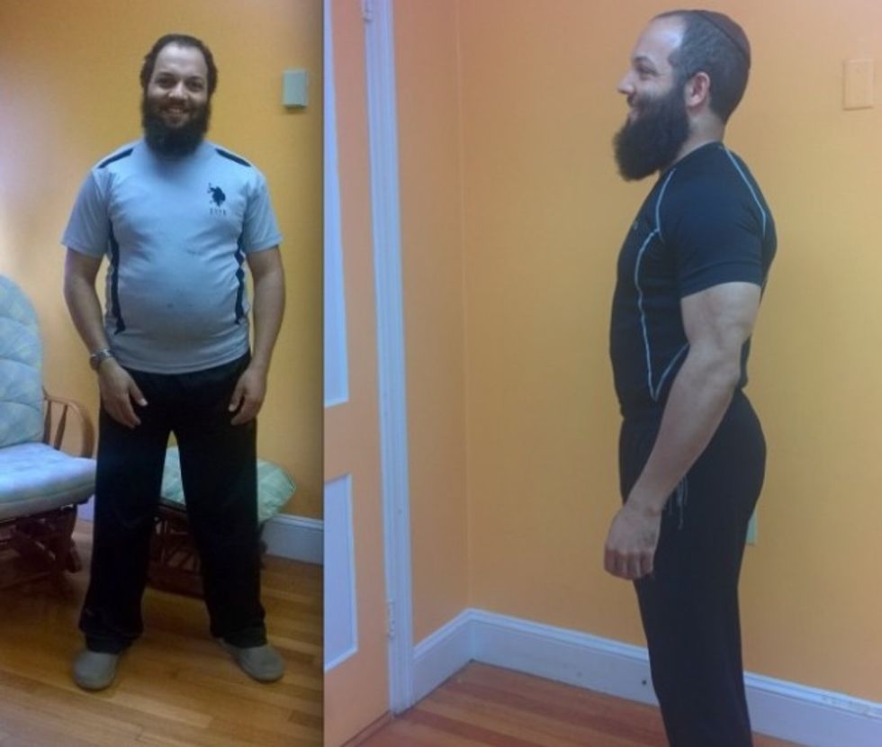Gray, 36, actually has gained weight — in the form of muscle — since his rising cholesterol levels prompted him to start working out a few years ago. Becoming a self-described "fitness freak" (his Instagram handle is crossfitrabbi) after years of inactivity wasn't easy: when his trainer challenged him to do 96 burpees in eight minutes, Gray managed 27 of the squatting and jumping exercises before he vomited. But that was a turning point.