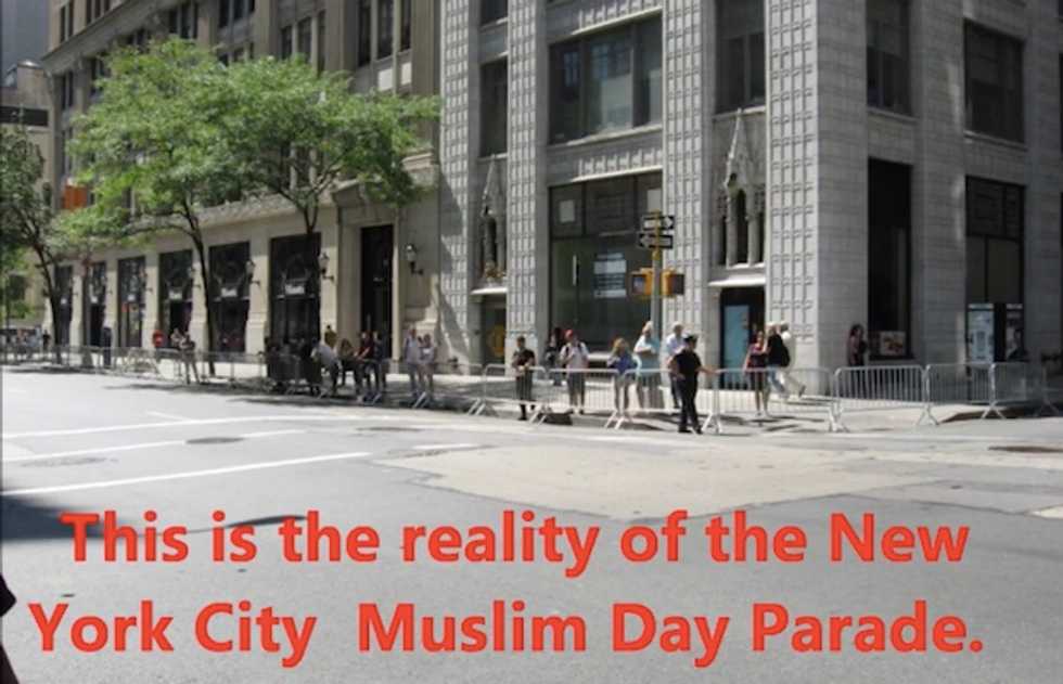 It seems none of the displays from previous Muslim Day Parades in New York City — the "black flags of jihad"; floats with girls riding in a cage in the back of a pickup truck; a hanging female mannequin draped in Egypt's flag; and a man riding a chariot down Madison Avenue while cracking a whip and chanting "freedom! Freedom!" — were present on Sunday.