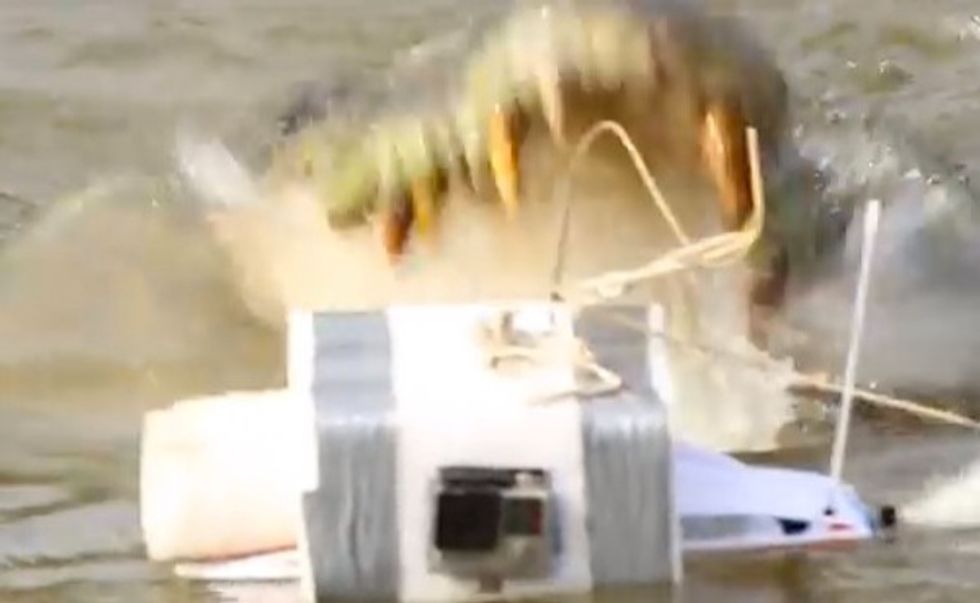 This time, they have a video showing the "dinner's-eye view" of a camera as its met by a hungry saltwater crocodile.