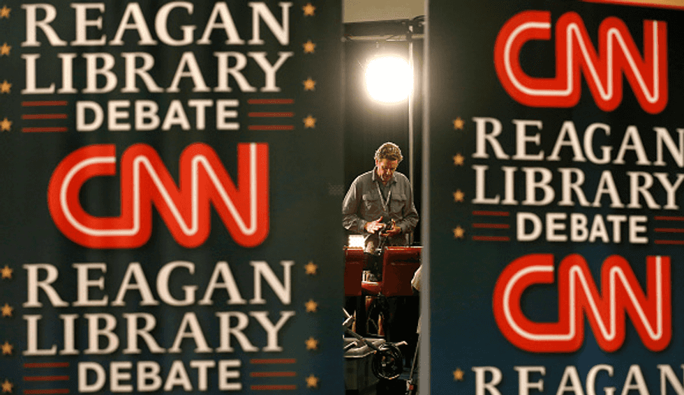 SIMI VALLEY, CALIF. -- TUESDAY, SEPTEMBER 15, 2015: Preparations are underway in the CNN Spin Room for the GOP debate at the Ronald Reagan Presidential Library in Simi Valley, Calif., on Sept. 15, 2015. (Photo by Brian van der Brug/Los Angeles Times via Getty Images)