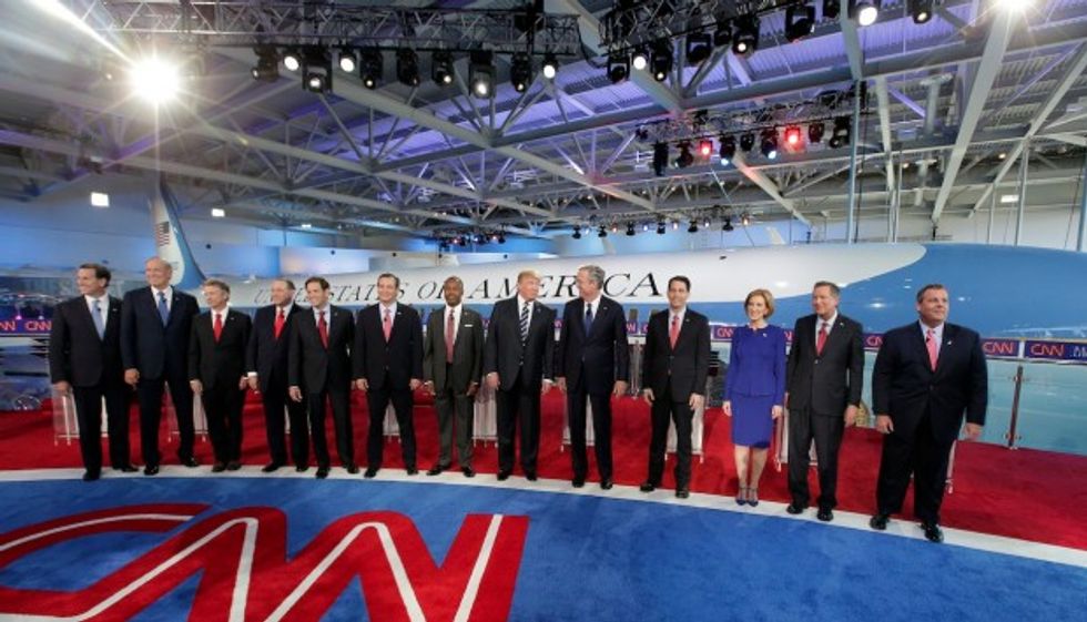 Republican presidential candidates stand on the debate stage at Reagan presidential library in Simi Valley, California, Wednesday, September 17, 2015. (AP/Chris Carlson)