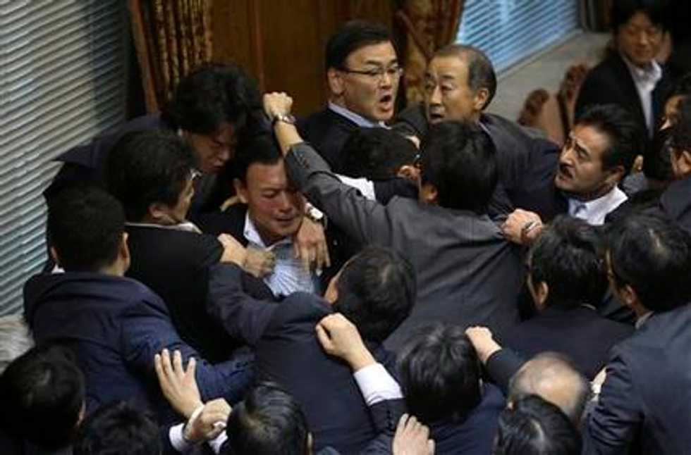 "You saw the scene. We do not recognize there was a vote. How can you tell what happened, what the chairman was calling?" said Tetsuro Fukuyama, committee leader for the Democratic Party of Japan.