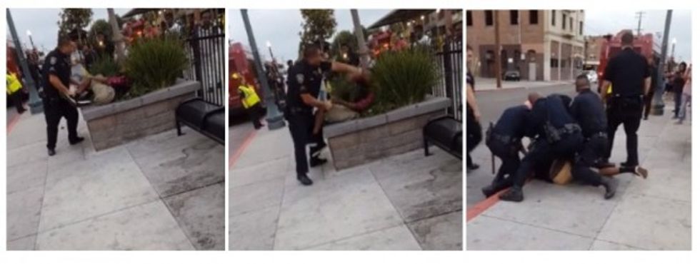 Stockton Police Department spokesman Joseph Silva told KPIX-TV that the 16-year-old was indeed walking in the bus lane, a violation of the city code, and he ignored an officer's order to get out of the lane. Silva told the news station the teen allegedly used foul language and so the incident that was caught on camera began: