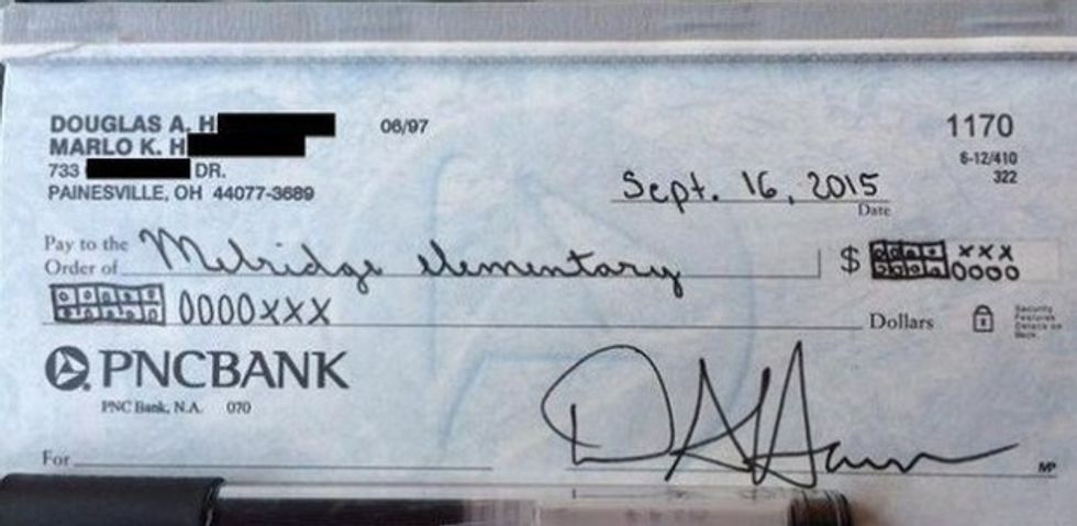 If they want to actually cash the check, officials at Melridge Elementary in Painesville, Ohio, will likely have to teach the bank teller how to figure out the cash amount using the Common Core way.