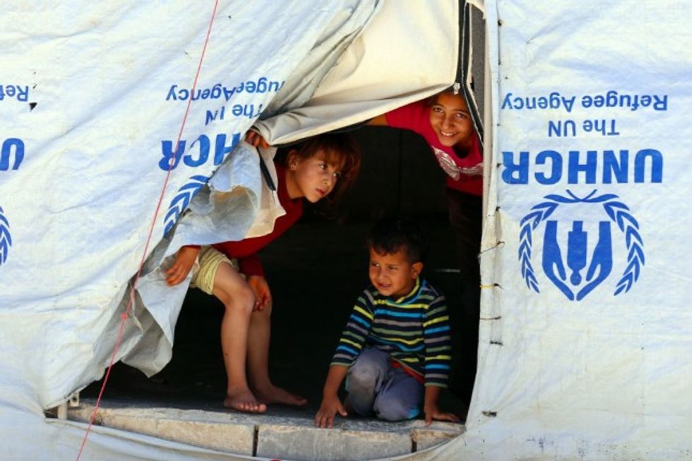 Syrian refugee children look from their tent in the Zaatari Refugee Camp, near Mafraq, Jordan, Saturday, Sept. 19, 2015. (AP Photo/Raad Adayleh)